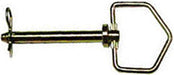Forged head hitch pins with swivel handle and zinc-plated R clip pin. 25% stronger than grade 2. Yellow zinc dichromate-plated. With hitch pin.